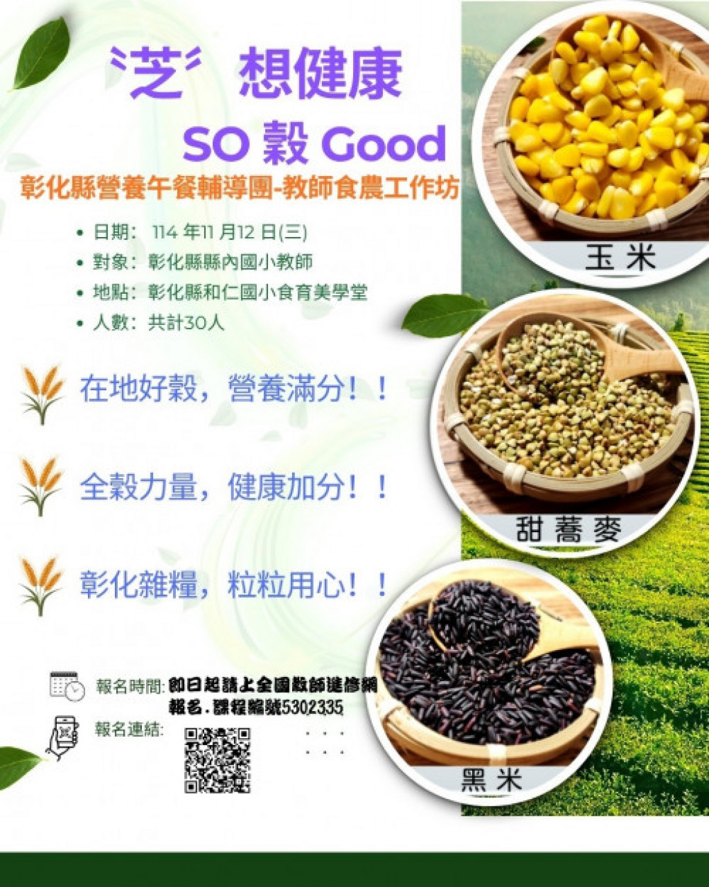 一、活動名稱:「〝芝〞想健康SO 穀Good」