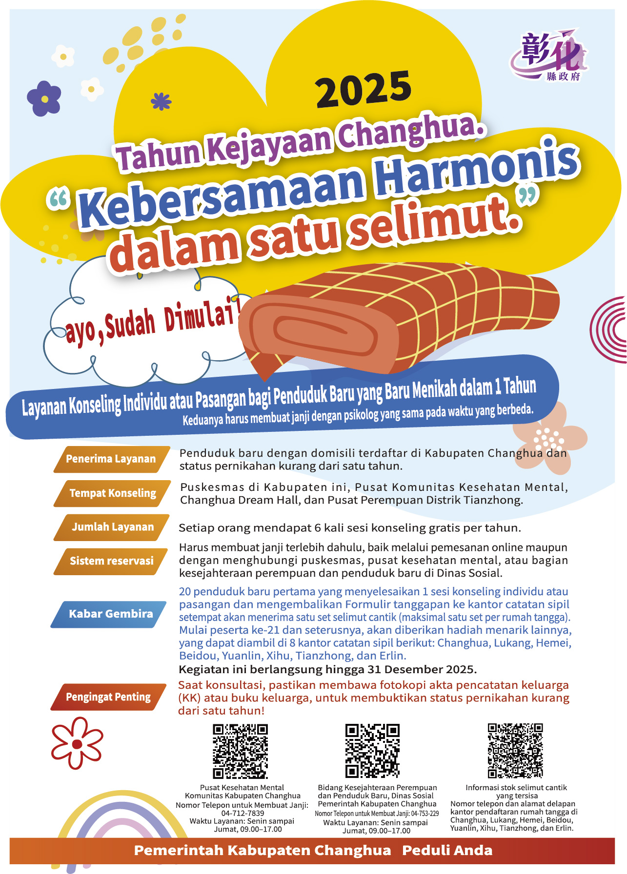 二、為呈現彰化縣政府積極推動多元文化與生活適應照顧輔導的成果,特邀集政府、民間團體與社區⋯等單位,並邀請新住