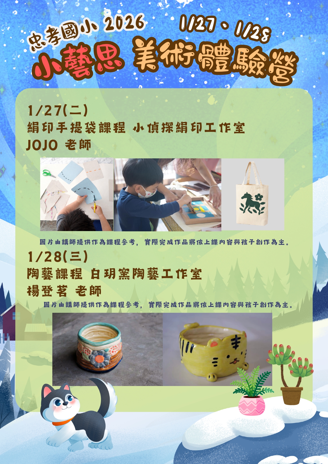 <忠孝國小2026小藝思美術體驗營>注意事項