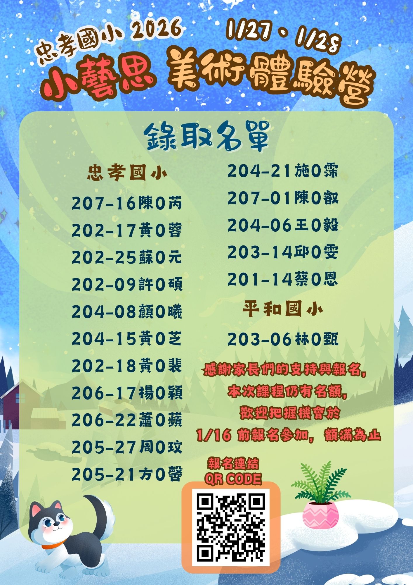 <忠孝國小2026小藝思美術體驗營>注意事項