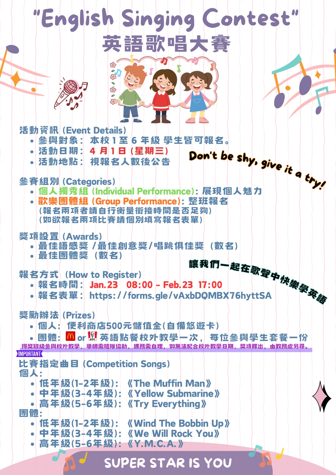 忠孝英語歌唱大賽,如附件
